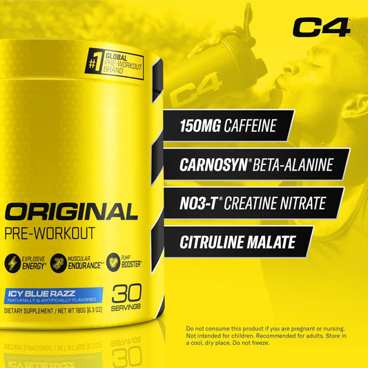 C4 Original Pre Workout Powder ICY Blue Razz | Vitamin C for Immune Support | Sugar Free Preworkout Energy for Men & Women | 150Mg Caffeine + Beta Alanine + Creatine | 30 Servings